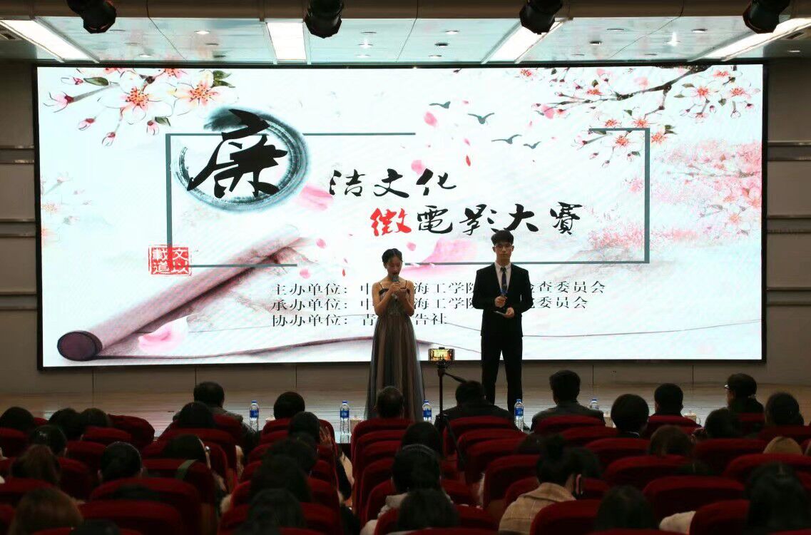 日前,由校纪委主办、文学院承办、青蓝广告社协办的第五届廉洁文化微电影比赛在苍梧校区艺术楼报告厅顺利举行。市文明办综合办公室主任王飞、市广告协会秘书长赵岩松、校监察处副处长马志同、文学院党委书记马恒民、院长安俊丽、广告系系主任谢朝清出席活动。