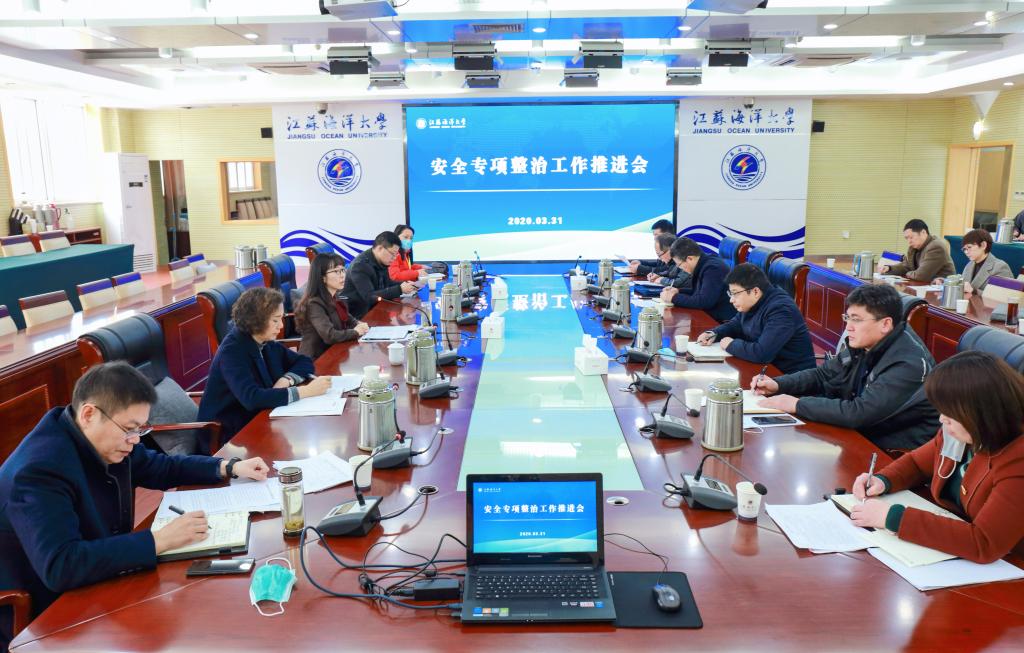 会上,消防安全、实验室及危化品安全、食品安全、传染病防控、建筑与施工安全等专项整治牵头单位负责同志作了重点交流发言。会议通报了去年以来学校组织开展的安全大检查风险隐患的整改落实情况。要求各单位、各部门进一步强化问题意识、风险意识、忧患意识,坚持边整边改、整改结合,标本兼治、重在治本。切实落实整改责任,细化整改措施,明确整改时限,确保整改到位。能尽快整改的立即整改,一时无法彻底整改的,明确专人盯防,严格落实防控措施,跟踪督促在限定时间内整改到位,确保万无一失。会议要求,按照《关于印发江苏海洋大学校园和校车安全专项整治实施方案的通知》(江海大委办〔2019〕15号),围绕安全责任压实、制度落实、措施严实要求,在推进安全专项整治工作中做到“12个有效落实”:即安全教育有效落实、实验室及危化品安全有效落实、消防安全有效落实、治安防控有效落实、校车及交通安全有效落实、食品安全有效落实、传染病防控有效落实、建筑与施工安全有效落实、实习实训安全有效落实、维护稳定措施有效落实、重点人群安全有效落实、网络安全有效落实。会议要求,各安全重点职能部门要根据工作分工,结合《关于做好高校开学安全生产排查和防疫物资准备工作的通知》(苏校防组〔2020〕51号),围绕“12个有效落实”制定“专项整治工作方案”,近期分头组织开展专项检查。