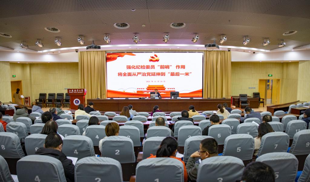 为贯彻落实习近平总书记“七一”重要讲话和党的十九届六中全会精神,践行党史学习教育“两在两同”建新功要求,扎实推进全面从严治党,11月24日下午,我校在会议中心黄海厅召开全校基层党组织纪检委员培训会议。校党委常委、纪委书记陈先宏出席会议并作培训辅导。各二级党组织纪检委员、基层党支部纪检委员120余人参加了培训。