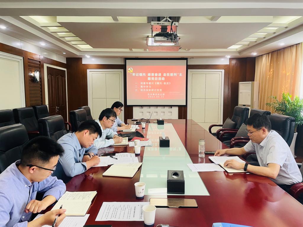 为深入推进学习贯彻习近平新时代中国特色社会主义思想主题教育,5月31日下午,纪委机关党支部在行政楼二楼会议室开展了“牢记嘱托感恩奋进走在前列”主题党日活动,活动由支部书记汪守建主持。