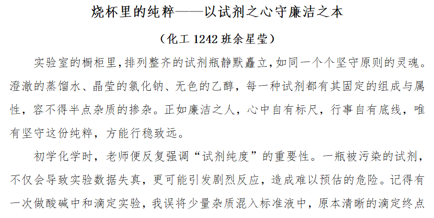 “以化学之理,书廉洁之魂”主题征文
