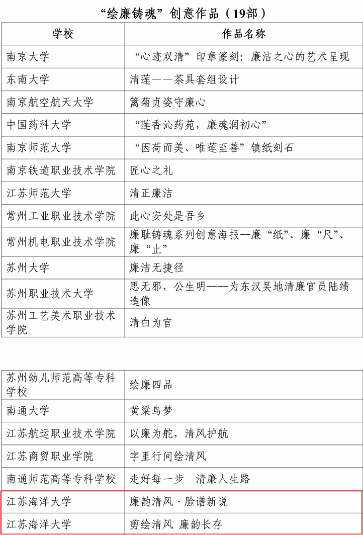四部作品入选江苏省第十届高校廉洁教育系列活动公示名单
